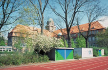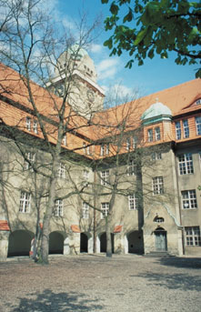 Der nördliche Anbau, der in den späten 40er-Jahren - notgedrungen und zugleich 'zeitgemäß' - allzu nüchtern rekonstruiert worden war (Bild? > Maus über Bild links ziehen!), wird in Anlehnung an die Originalpläne restauriert (Architekt: Heinz Fähnrich). |
